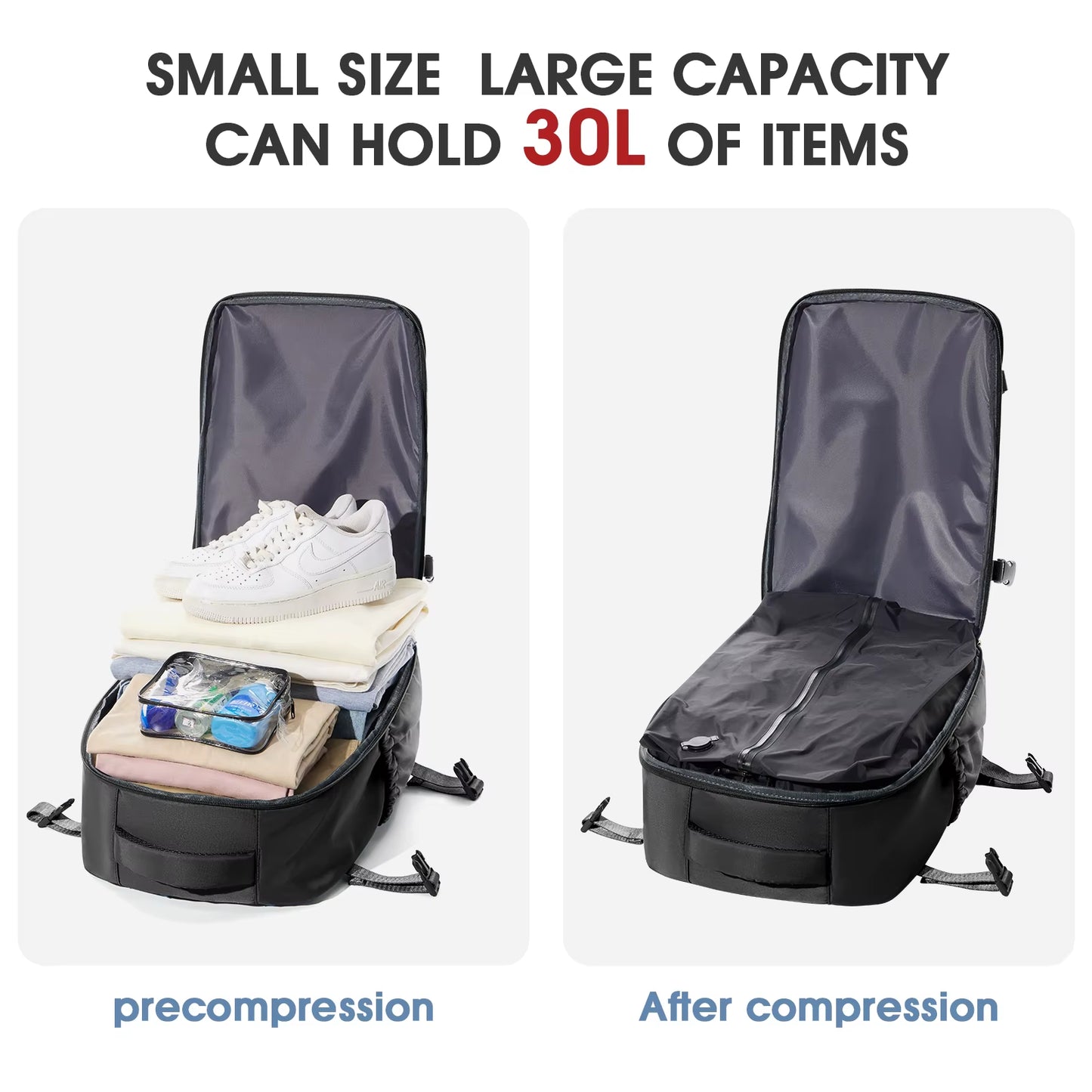 Ce sac est équipé d'un système de compression sous vide qui vous permet de réduire le volume de vos affaires, idéal pour maximiser l'espace de rangement lors de vos déplacements.